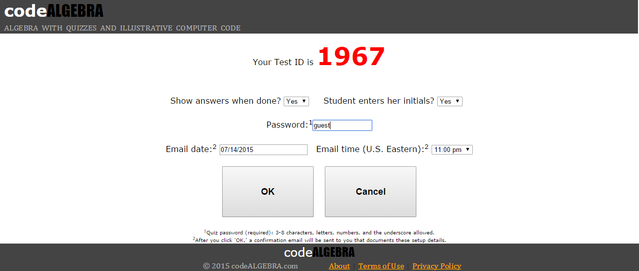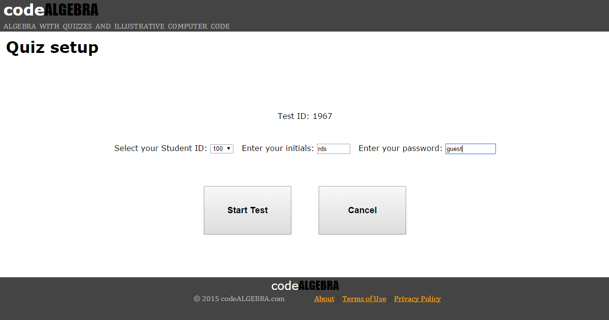 9. Finally, give your students their individual Student ID numbers, the Test ID number, and the quiz Password.