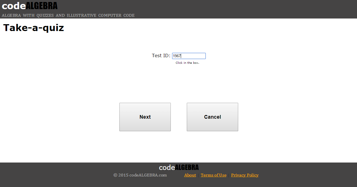1. Start by clicking the green TAKE-A-QUIZ button. (You must first have a valid test ID number, student ID number, and password.)